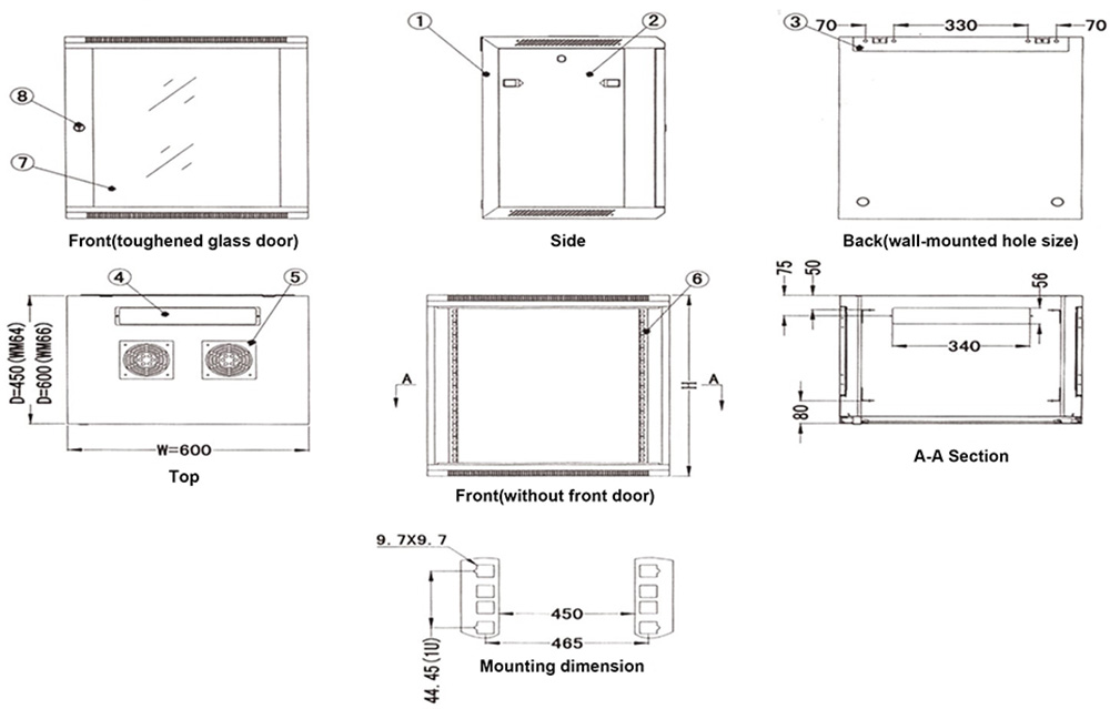 •Standard: Comply with ANS/EIA RS-310-D, IEC297-2, DIN41497 PART1,DIN41494 Part 7, GB/T3047.2-92 Standard;
